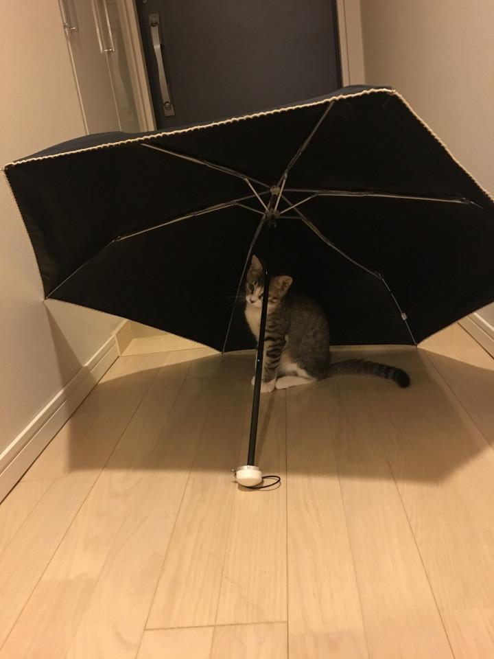 で、廊下で傘をちょっと乾かしていたらゆずポンが早速登場。なんとなくゆずたん、れーすくいーんみたい、と写メしながら思っちゃいました。