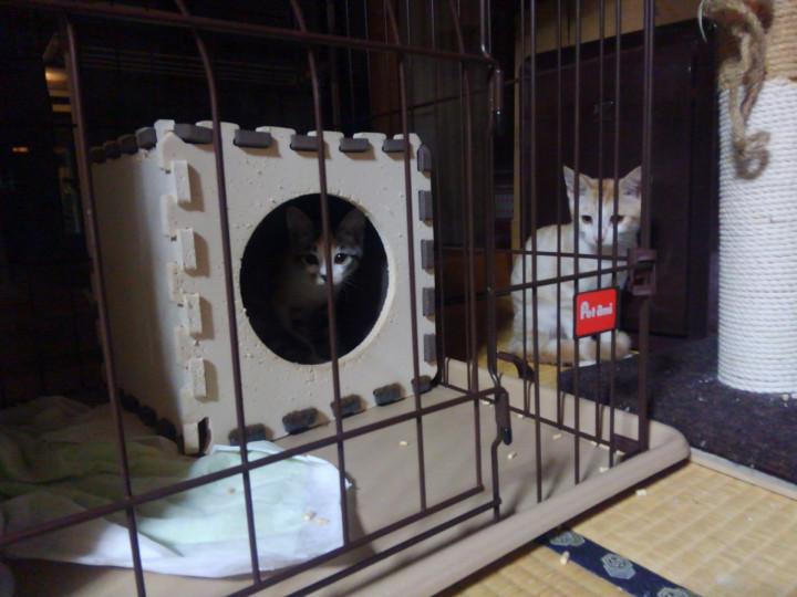 すったもんだの末、現在は子猫たちすべてケージの中。