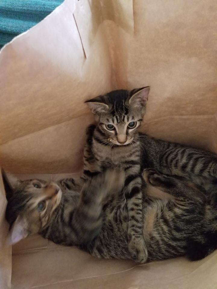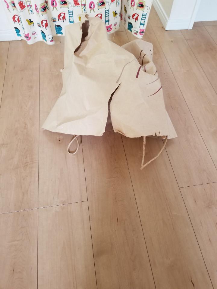 紙袋の手提げ部分に首が入り抜けなくなって、びっくりして、イーグルが入ったまんま階段を上がり落ちて😅