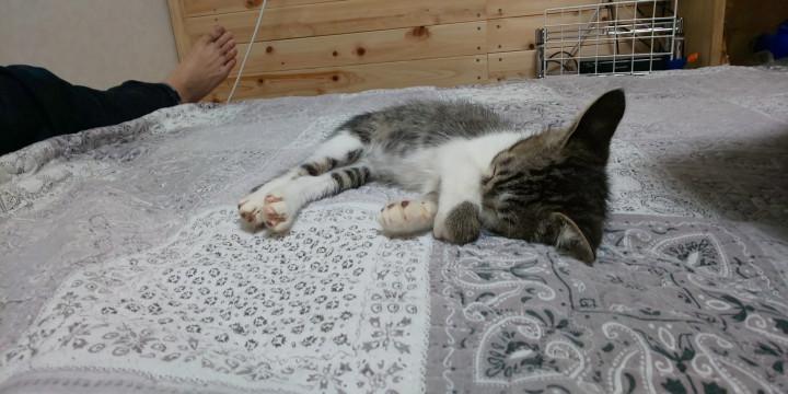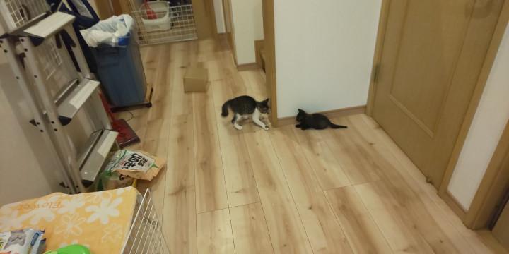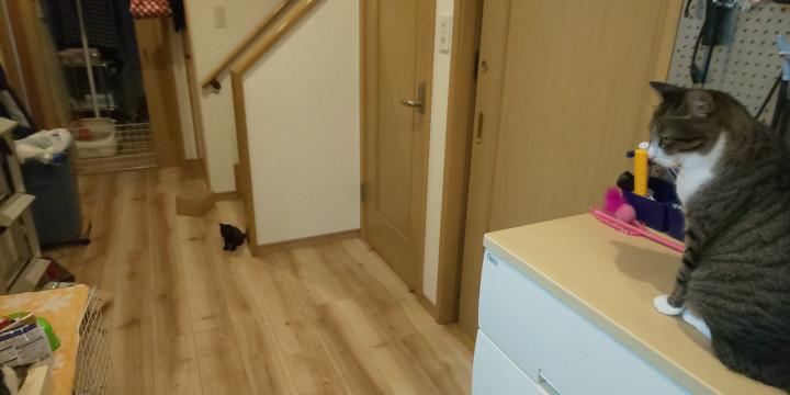 今日のちびちゃんは保護ネコ保育園で先輩にゃんことして