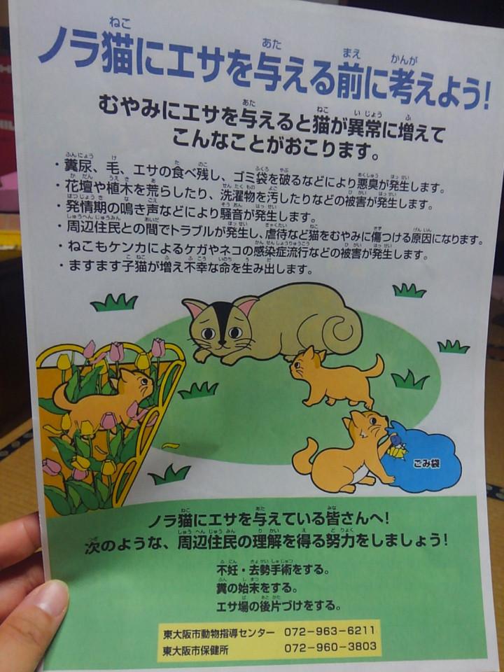 そして、エサやりするならTNRをっていうチラシを回覧板でまわすのもありかと思った。