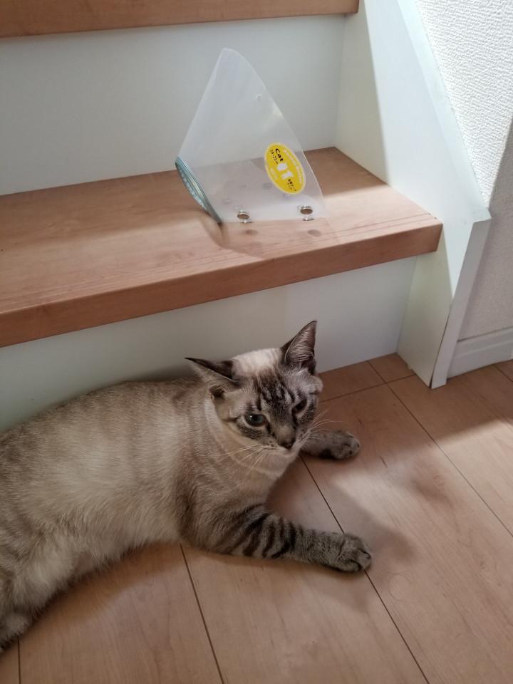 目を掻かないようにエリザベスカラー借りたけど、アクアはシャーシャー言って付けてくれない😅