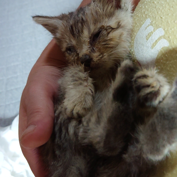 たまにしか近道などしないのに、たまたま通った道に、子猫が倒れてた。