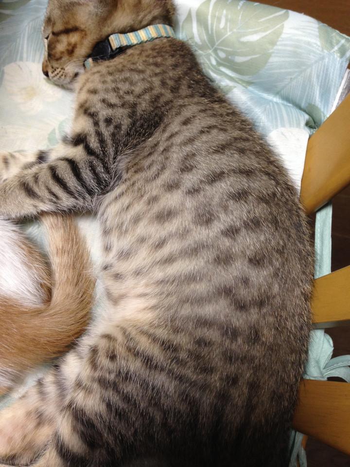 普通の虎柄では無く、エジプシャンマウの様な、斑点模様の柄の子です。