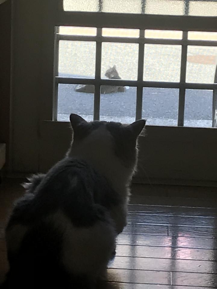 シラけたのか外猫さんは退散しましたがシエルだけは熱り立ったままです。