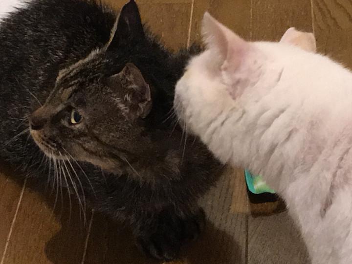 和室の先住猫が数匹いるのですが、夜中の脱走劇にビビり、サブローととにかく距離を置いています。