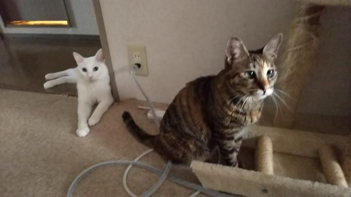ちーちゃんが食べてるのに、ご飯を横取りします。2つのお皿に同じものを入れてても、ちーちゃんのが美味しそうに見えるらしいです。