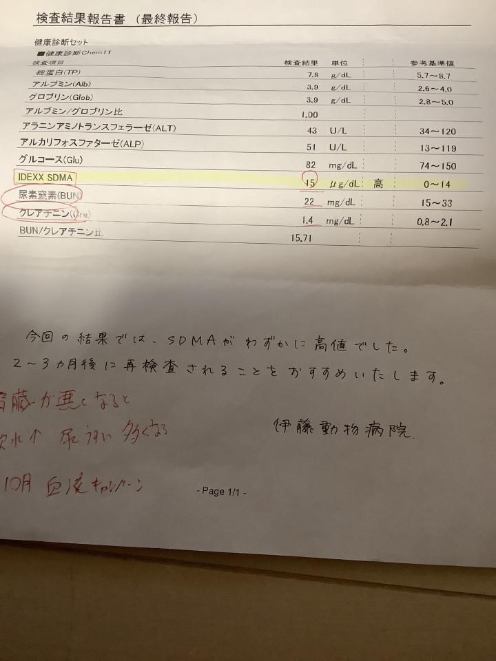 先生から見て元気だし、普段の生活で、食欲、尿の量など問題無ければ、様子見で良いと。