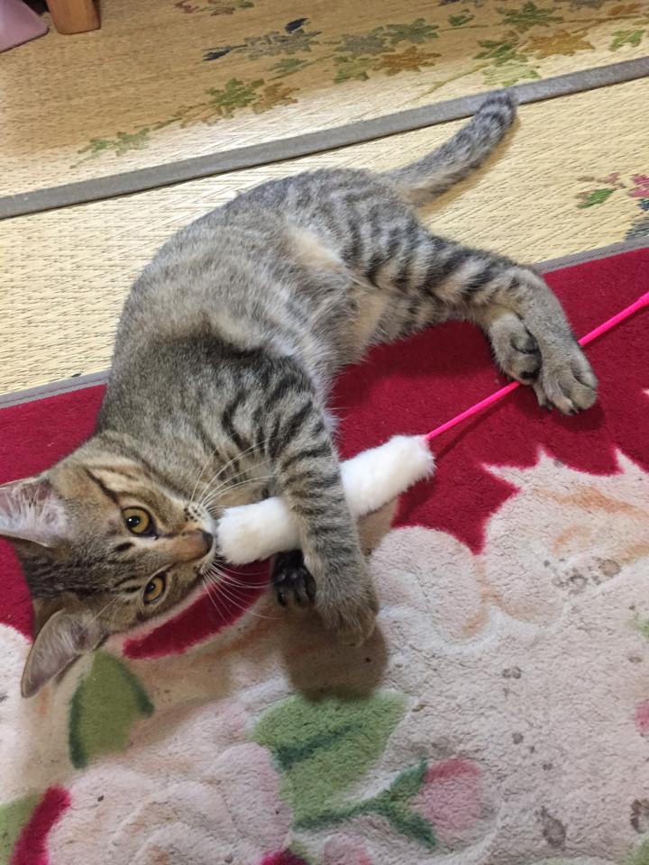 がっしり猫じゃらしを掴んで