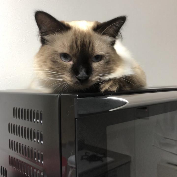 気付けばレンジより高い食器棚に居座っている事があります