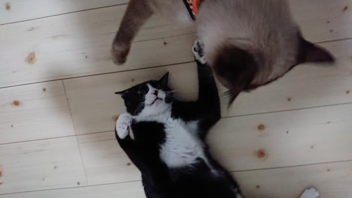 ちょいちょいよ…前脚にでちょこちょこなぐるでない。