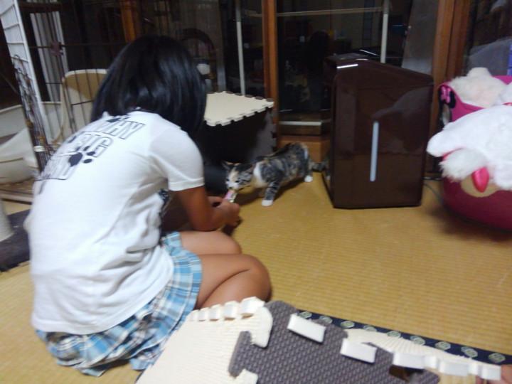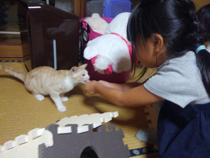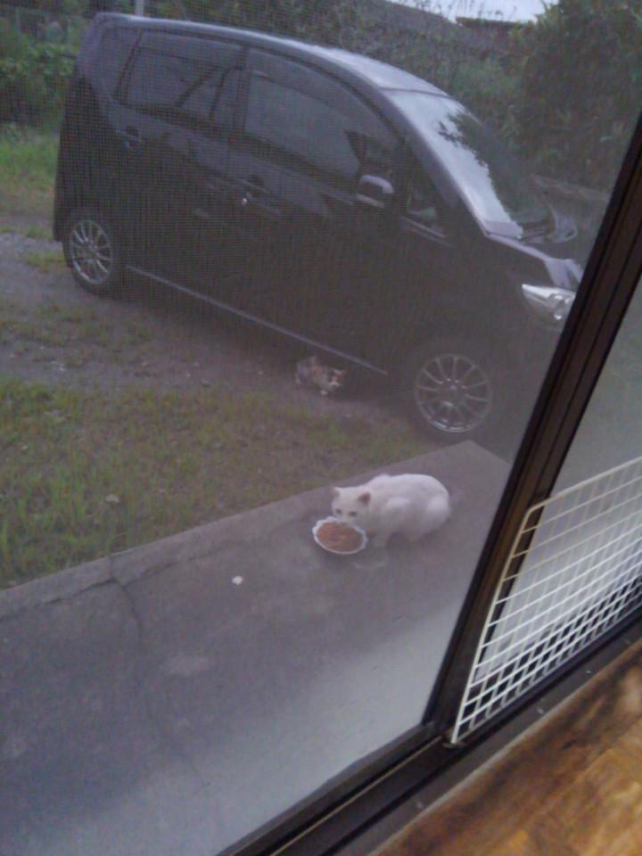 お母にゃんがいても食後にギャオギャオ鳴いて帰るから、ごちそうさまの挨拶?