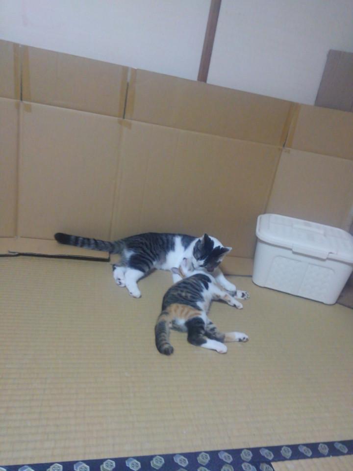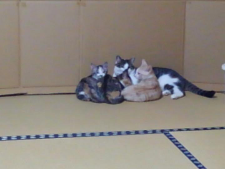 昨日一晩中8畳間で遊び回った子猫たち、今日は電池切れ。