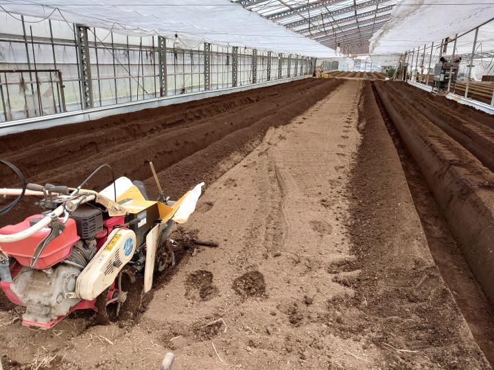 イチゴのうね上げもなんとか出来上がり、植え付け準備もボチボチ進んでます(*≧∀≦*)b