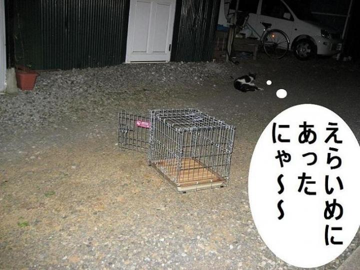 じりじりと30分か40分か、待って待って、やっとケージに入ったので、トビラを閉めました!!