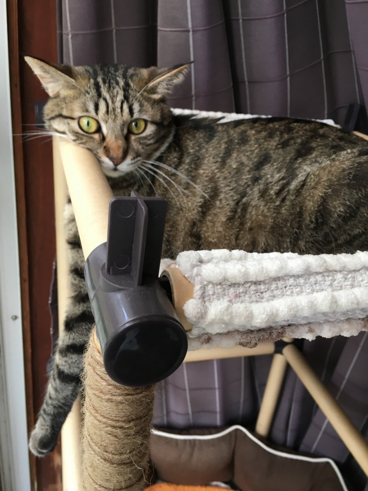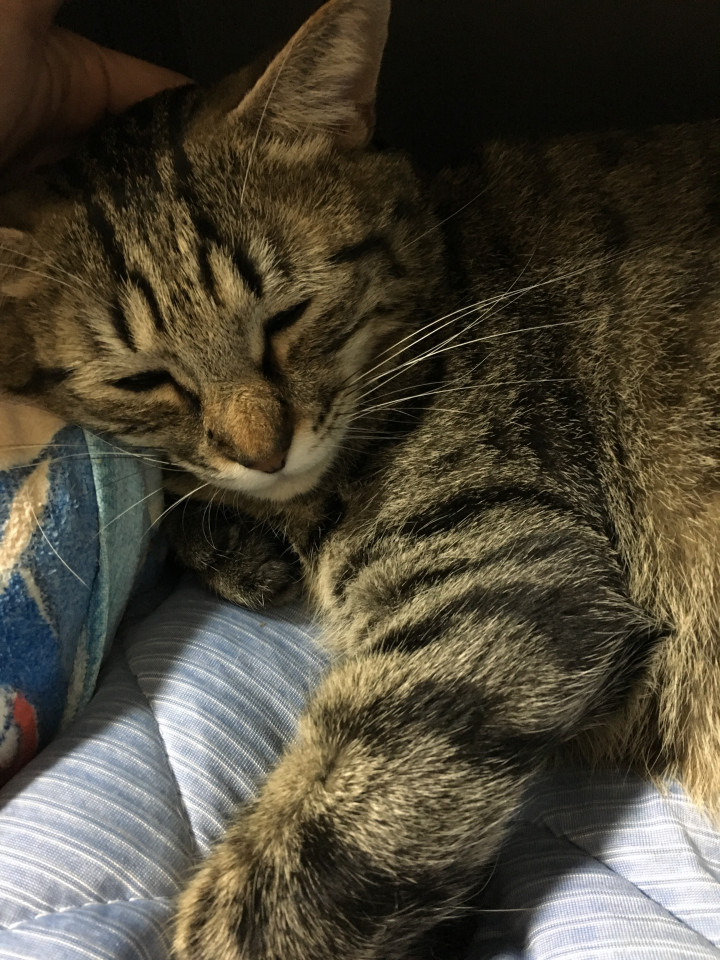 仕事行く前に行って来るよー!ゲンちゃんはご飯を食べて、ここで良い子にネンネして待っててねー☺️と言いながらナデナデして出勤するんですが、帰宅すると7割位の確率で言われた所で寝て待っててくれます😉