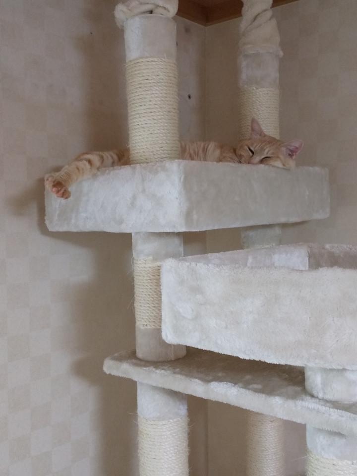 雑魚寝アイテムを奪われ、呆然のねこザイル。