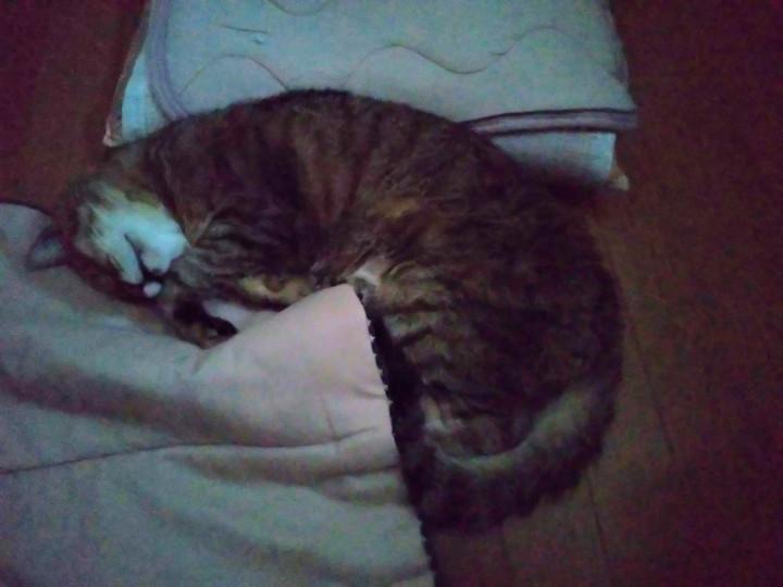 枕の上で寝るもんだから譲ったんだけど、ズルズル落ちてきてこの有様。