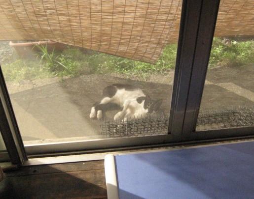 すだれの下で寛いでいます。
