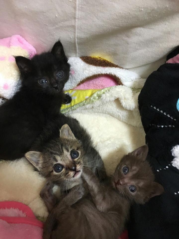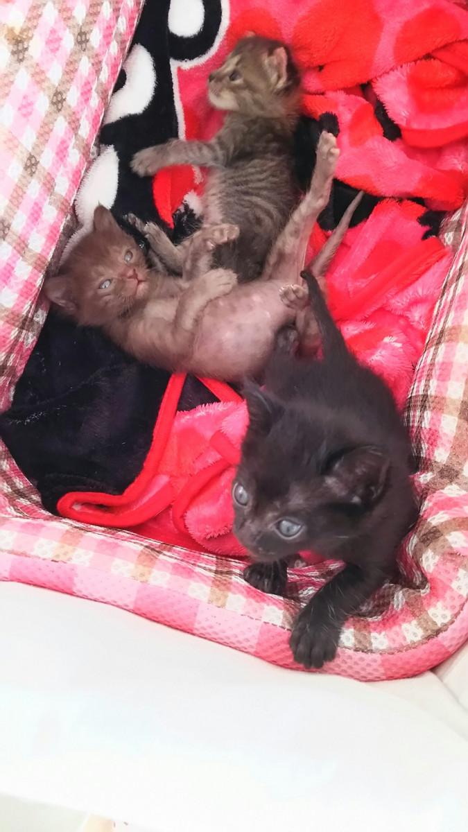 4匹いる内の1匹が残念ながら直ぐに亡くなりましたが、残った3匹は大きさが違えどスクスクと育ちました。
