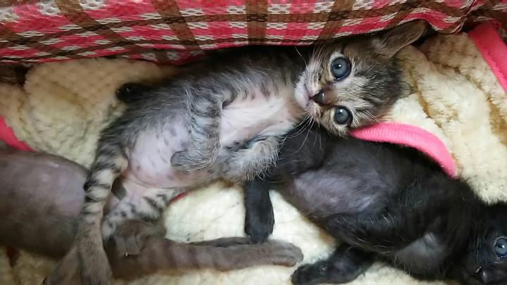 ウチは既にウサギを飼っていて、基本的に犬猫禁止のマンションなので連れて帰る訳にも行かず、半ばパニックになっていたら旦那がとりあえず明るい歩道に置いておいたら誰か拾ってくれるじゃろとそのままダンボールを置いて帰ると言われ。
