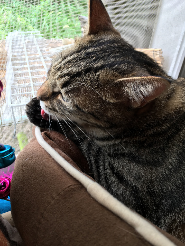 気持ち良さそうに肉球お手入れして知らん顔でした笑
