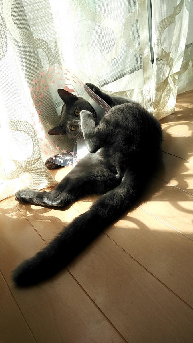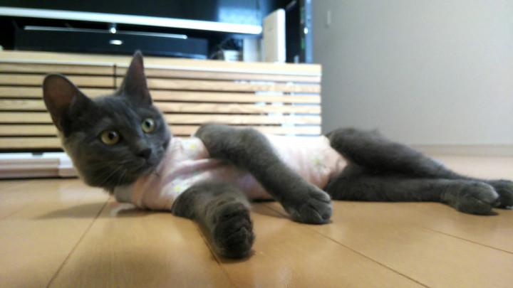 エリザベスカラーが嫌で、取ってニャー!とジタバタしたため、術後ネコ用スーツを買ってみました。