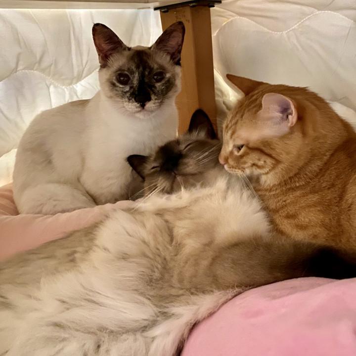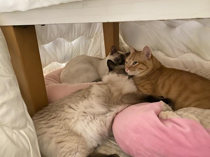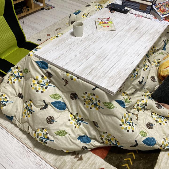 我が家の猫達は風邪引きばかりの為、冬用ラグの用意と同時に昨年やっつけで作ったなんちゃってコタツの出番がまたやって来ました
