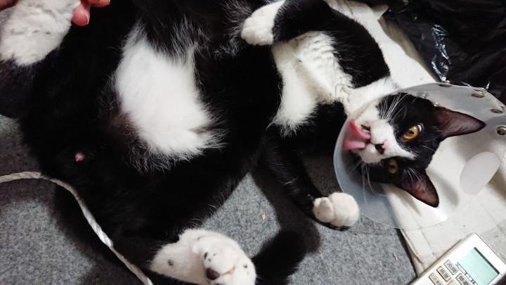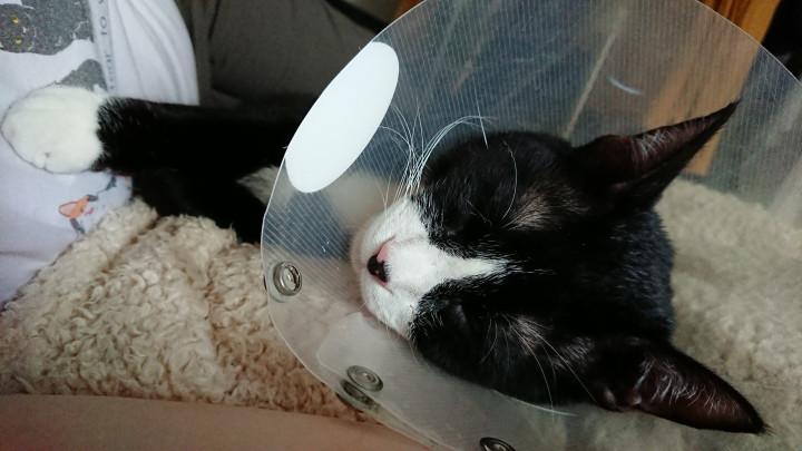 エリザベスが私の顎にクリティカルヒットしますが甘えん坊です。