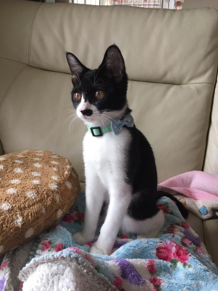 まだ2ヶ月にならない位の、黒白ハチワレ男子2人とサビシロ女子1人の兄妹でした。