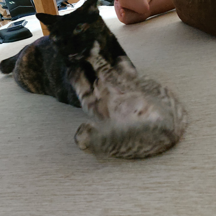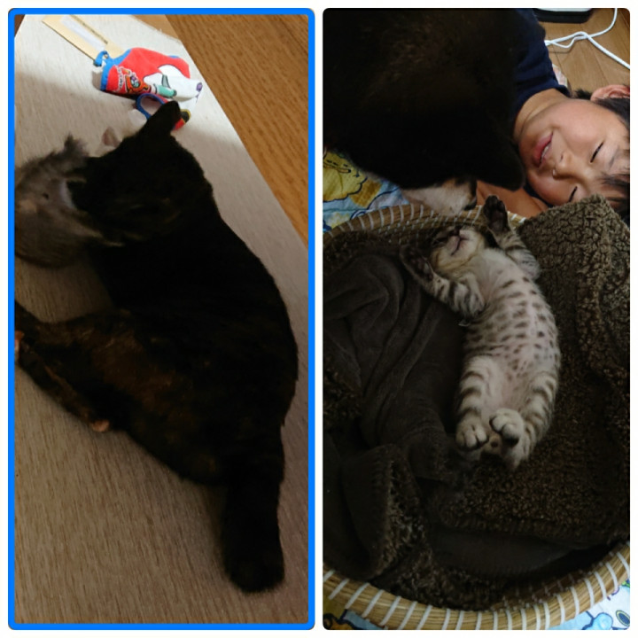 猫社会には猫社会のルールがあると思うので、私は、シマよりもスズを抱っこして、たくさん労うことにしています(^.^)