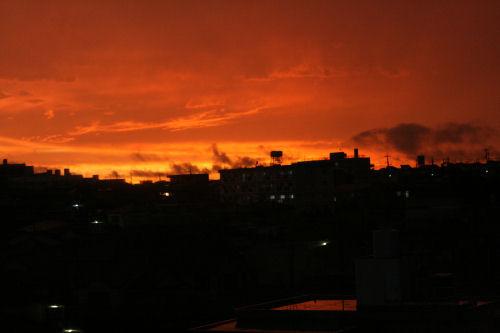 真っ暗だった空が一瞬で焼けたように赤く染まりました。
