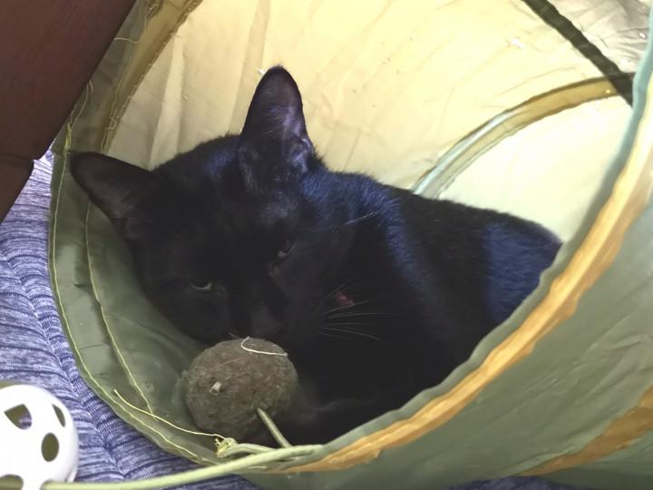 最近おふたりニャンに人気のトンネルの中で寝ちゃってたれん君