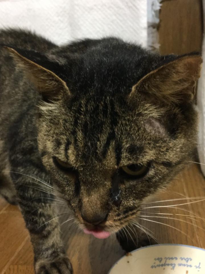 お皿にパウチを出してあげると、サブは他の子たちと一緒に食べ始めました。
