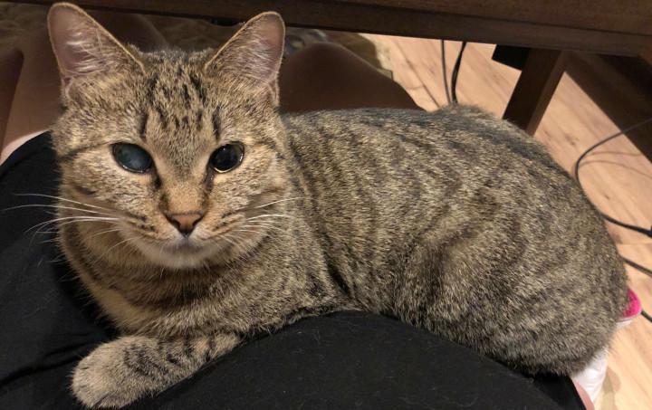膝に乗るのは甘えたい時。なのでぽては何度もこちらを見上げてきます。