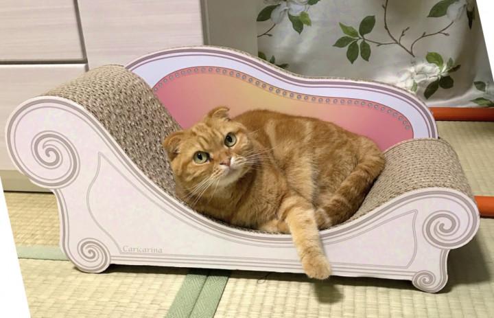 高級感あふれる爪とぎ「カリカリーナ」なんですが、ぽてが全然使ってくれない話を母にしたら、母が貰ってくれることに。