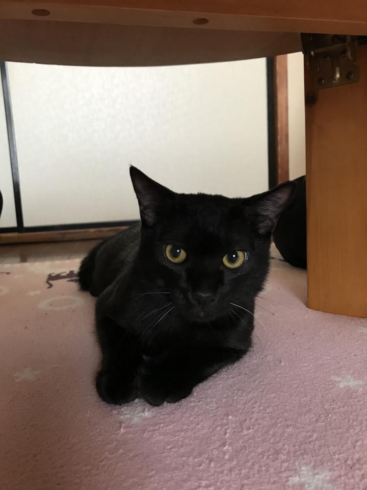 私の事は忘れてしまったのか?人見知り状態でテーブルの下から出て来ません。(T-T)