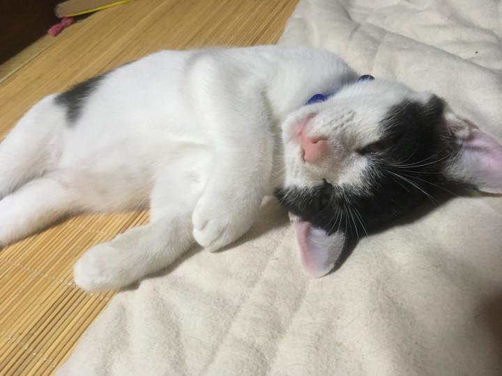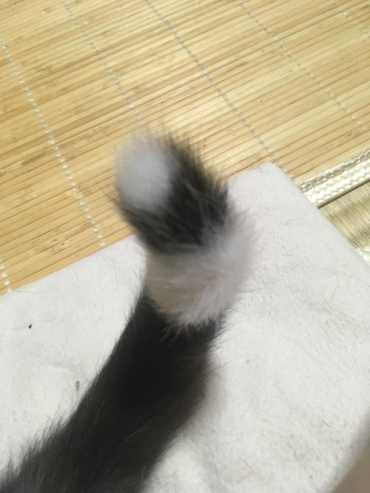 保護中のハチワレ子猫のももちゃんのしっぽはとても珍しい柄です!!