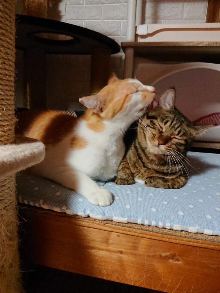 シナモンのグルーミングでウトウト♪な