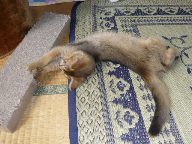 我家の環境に慣れたんでしょうか、ここのところ、私のもとへこなくなりました。涼しいところを見つけては、転がって寝転んでいます(笑)