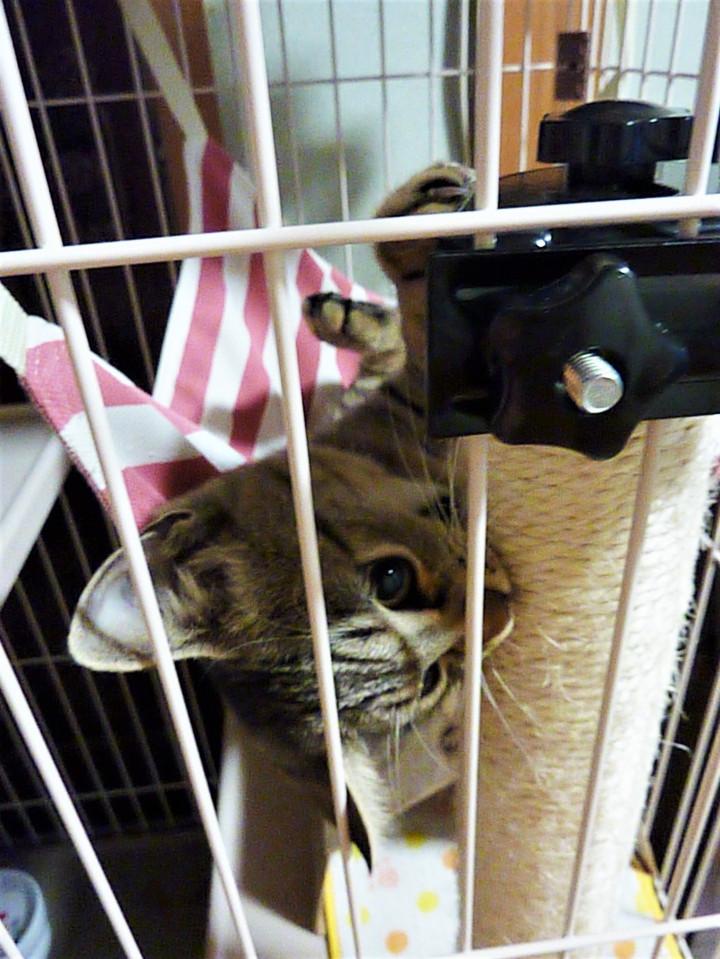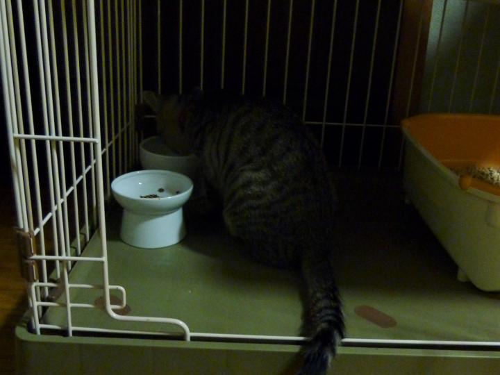 ケージに入ってご飯を食べ始めたら扉を閉めて