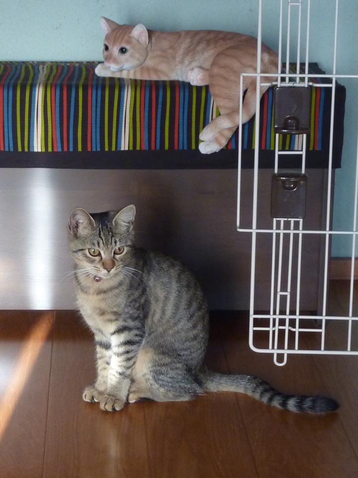 台風19号の大騒ぎで母屋にお泊りしたチビ。