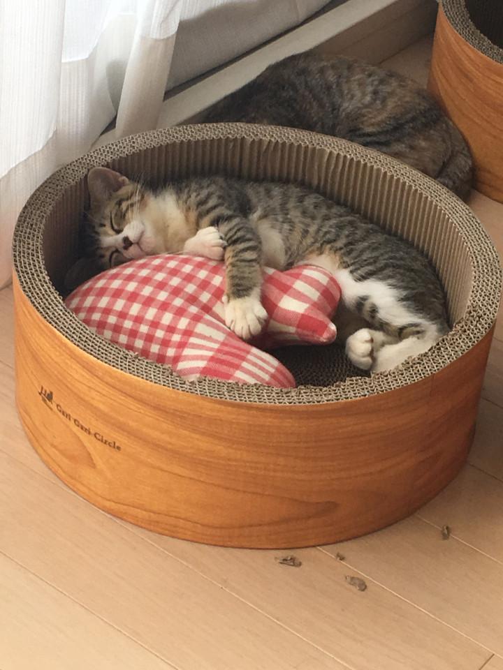 爪研ぎのガリガリサークルに余裕で収まっていたのに、今ではピッタリサイズになってる。