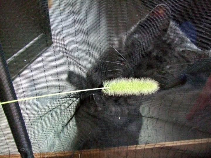 網戸越しにじゃれまくりのくろまるさん。