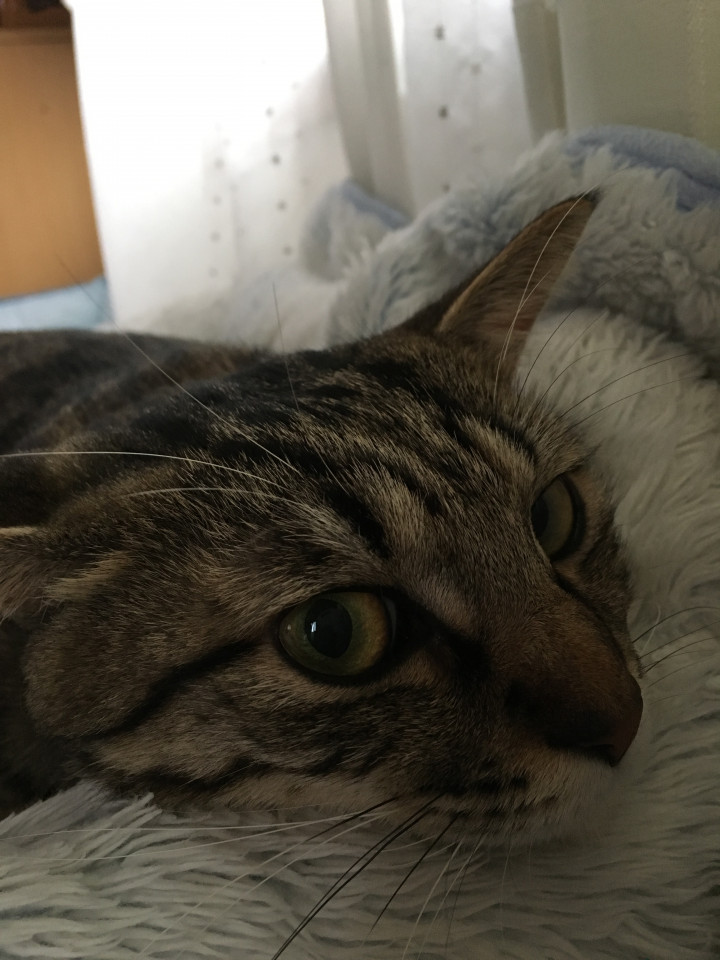 ゲンは大丈夫だよーと声を掛けながらナデナデしてあげていると、ニャーニャー言ってました(・ω・`)