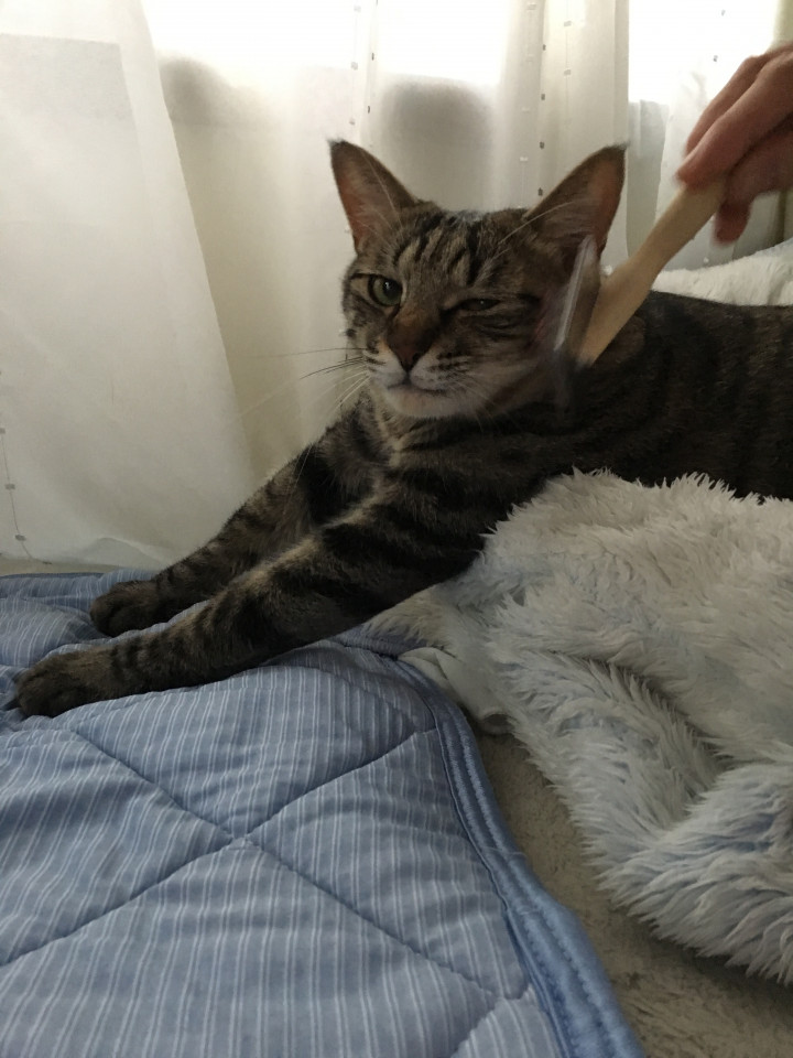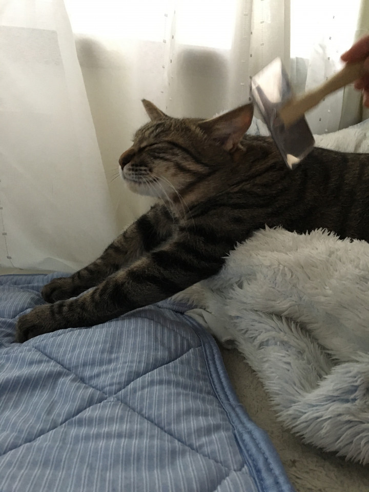 リバースしてスッキリしたのか主人にブラッシングして貰いリラックスタイム突入😅