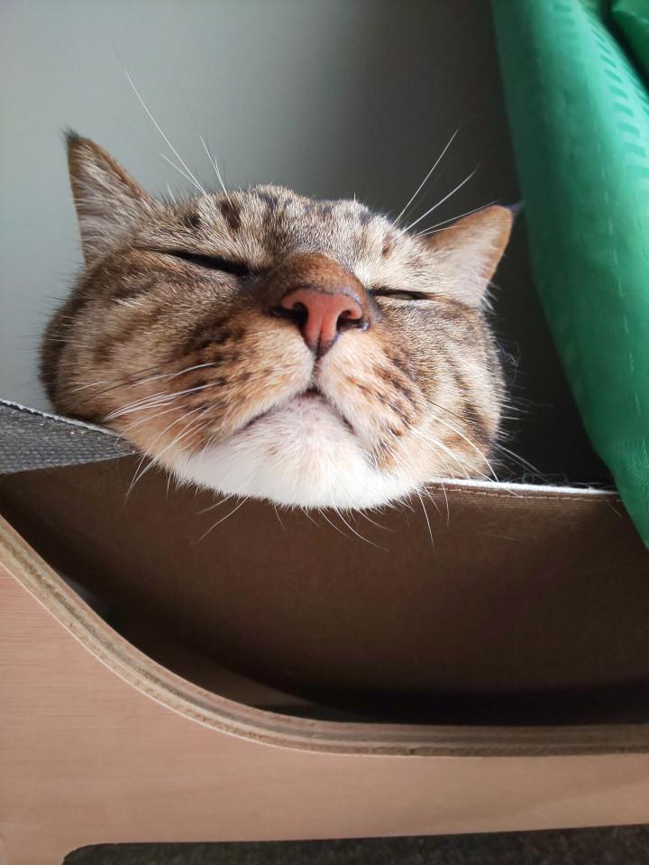 しかしネットで話題の生猫さんをブラッシングには、我が家じゃ不評。