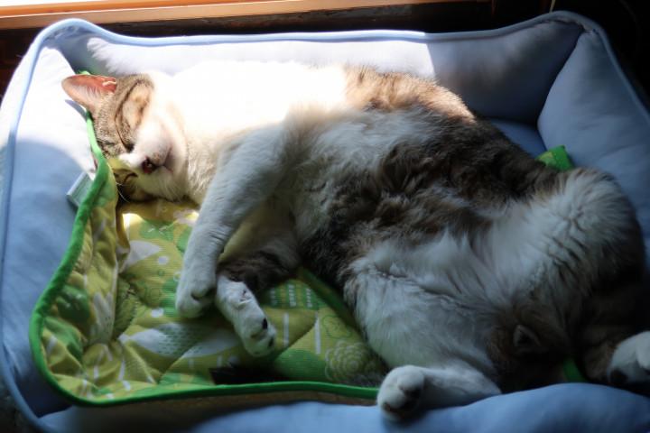 これを何度か繰り返した後、なでなでしていた私の腕に軽く猫パンチ。なでなでをやめた私の腕を枕にして、眠ってしまいました。