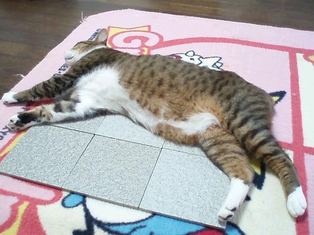 玄関のタイルでゴロンとするので、主が百均でタイルを買ってきました。