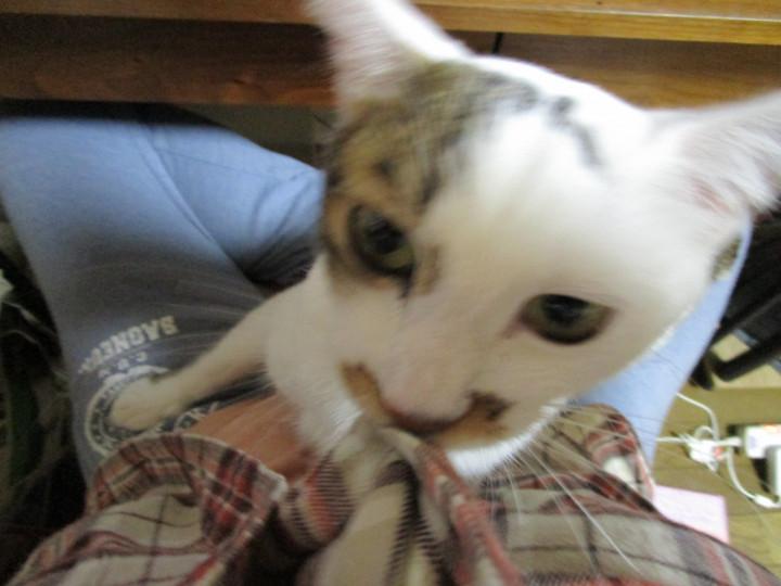 ここの所、朝は少し肌寒いくらいですが、お陰でナヲちゃんが暖を求めて膝にやって来ます。